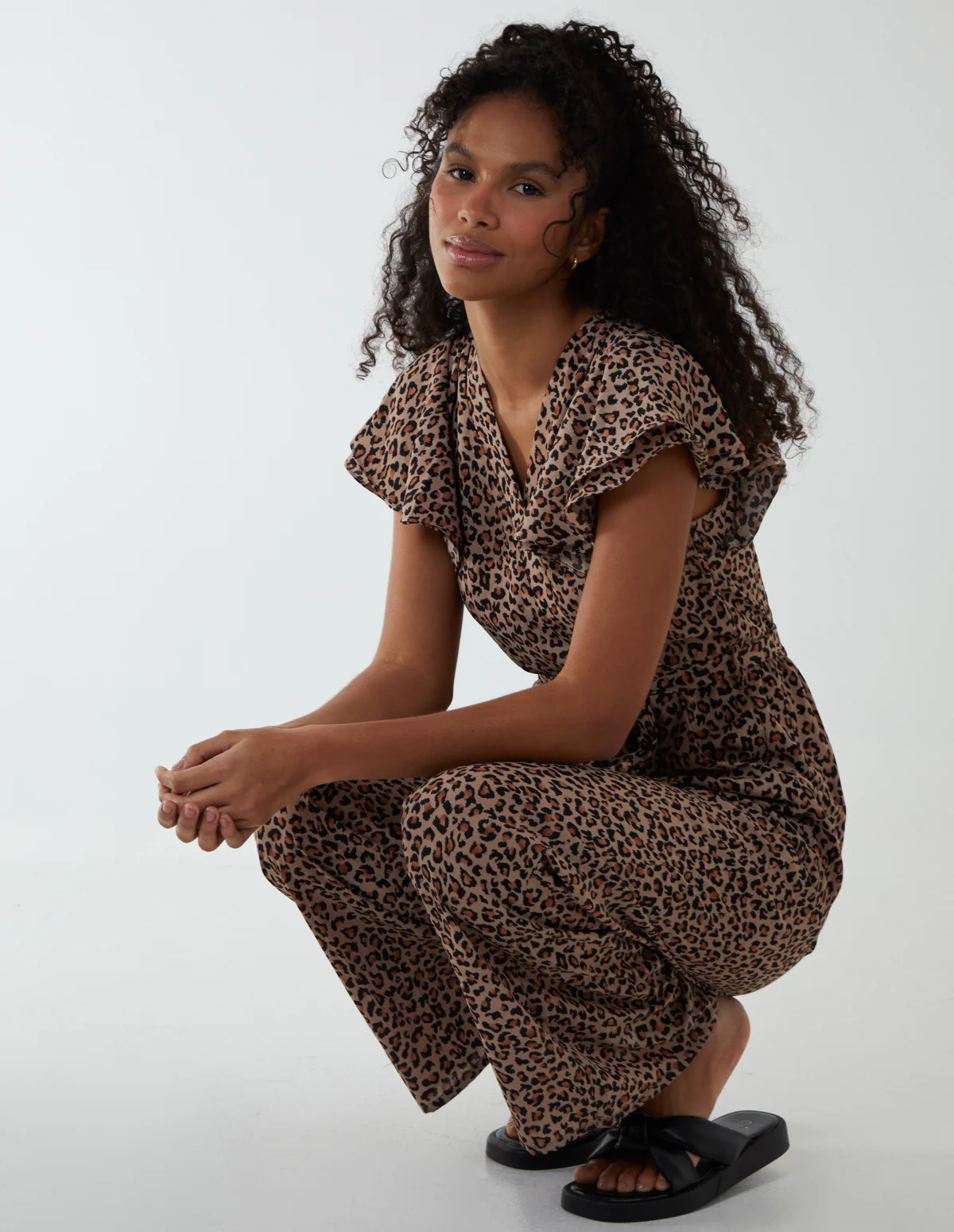 Jumpsuit With Ruffle Sleeve And Wrap Front