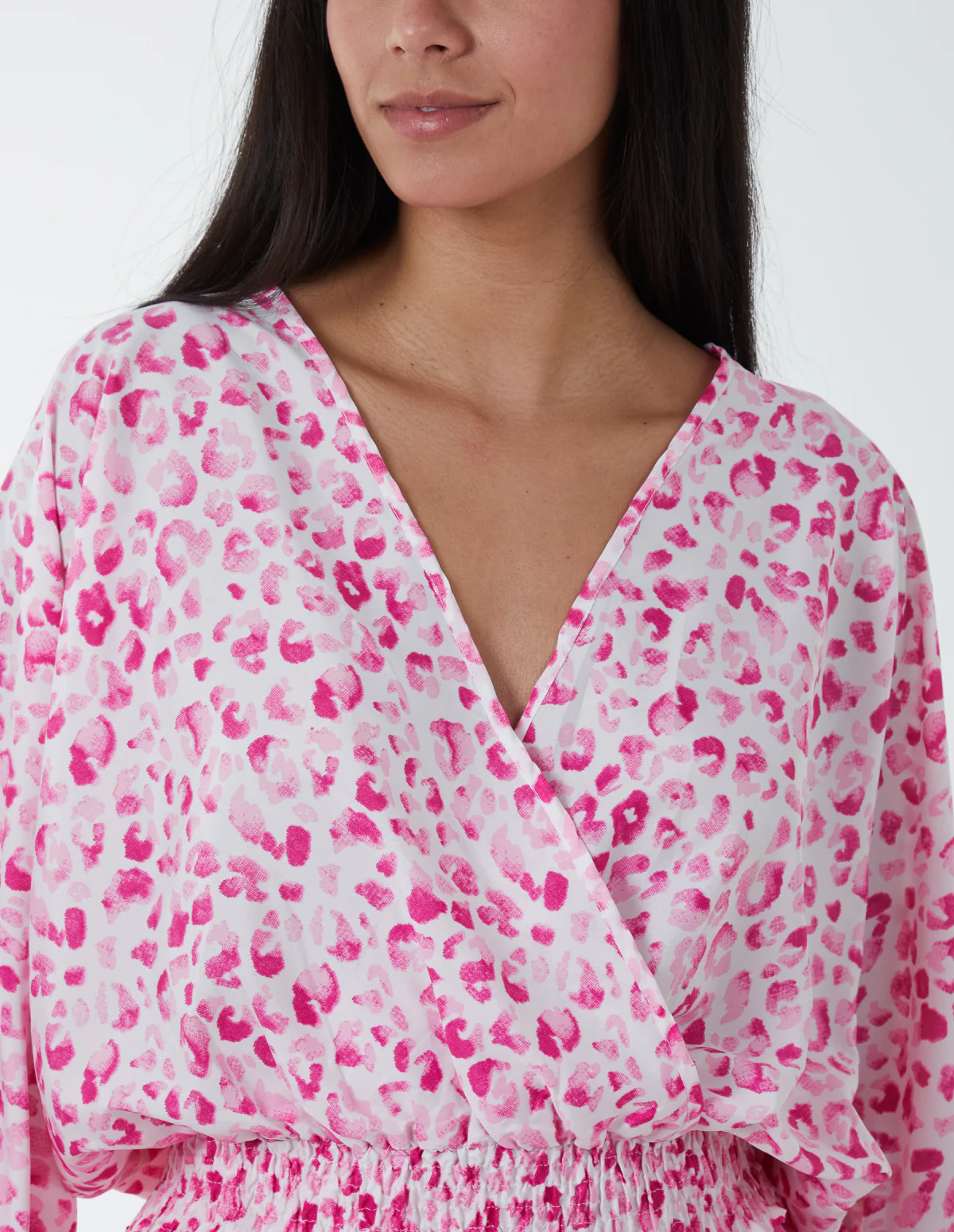 Leopard Print Elasticated Sleeve Wrap Front Elastic Hem Top